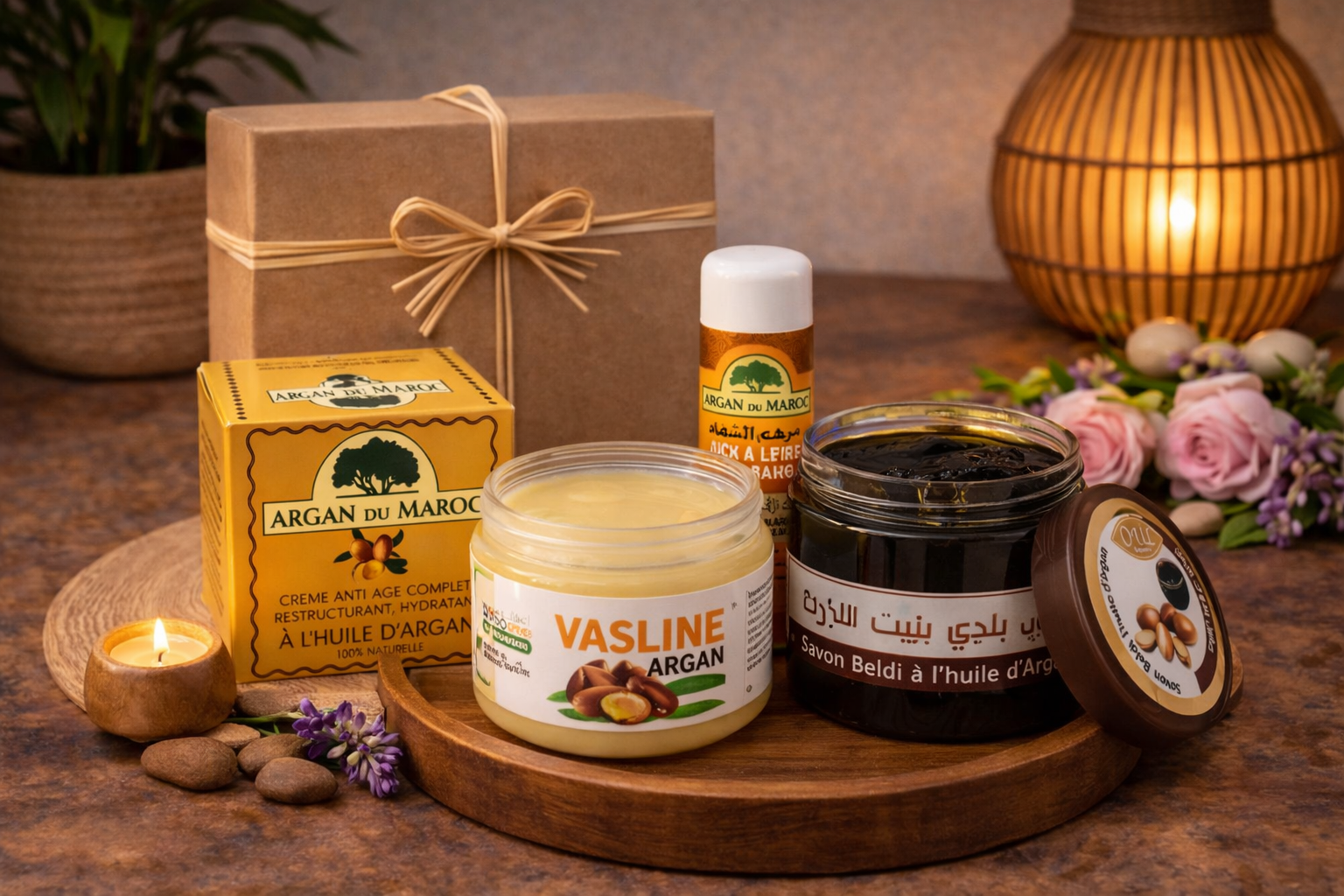 Offrez un véritable moment de soin avec ce coffret à base d’huile d’argan, inspiré des traditions marocaines.