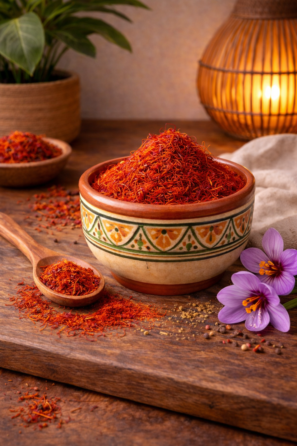 Découvrez le safran marocain, surnommé l'or rouge, l'une des épices les plus précieuses au monde. Quelques pincées suffisent pour parfumer délicatement les plats, leur apporter une saveur unique, légèrement florale, et une belle teinte dorée.
